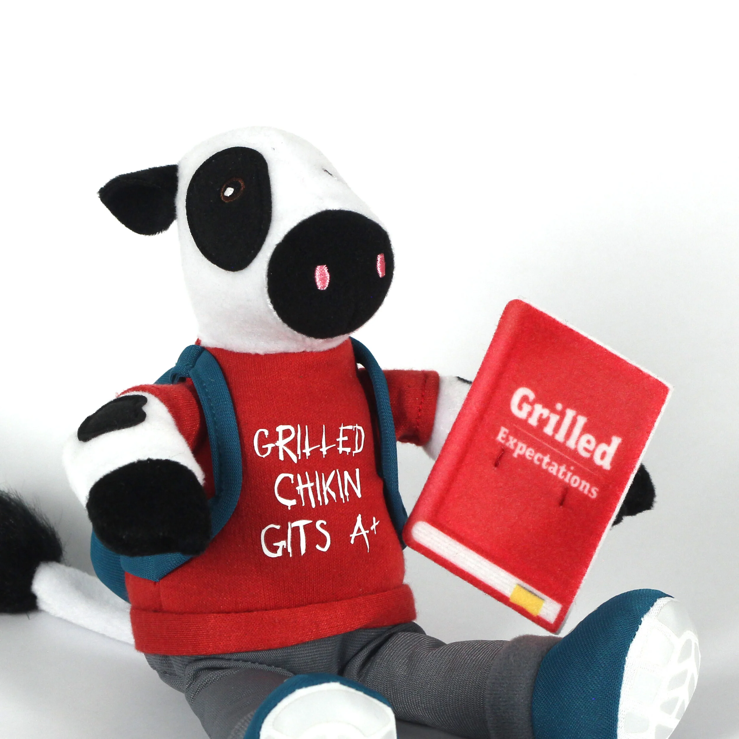 The Nutcracker plush adds a Holiday flavor to the standard cow doll. It features a stovepipe hat, a felt drum, epaulets, a belt, and a nice yellow collar. This design is one of the most popular cow dolls ever released.